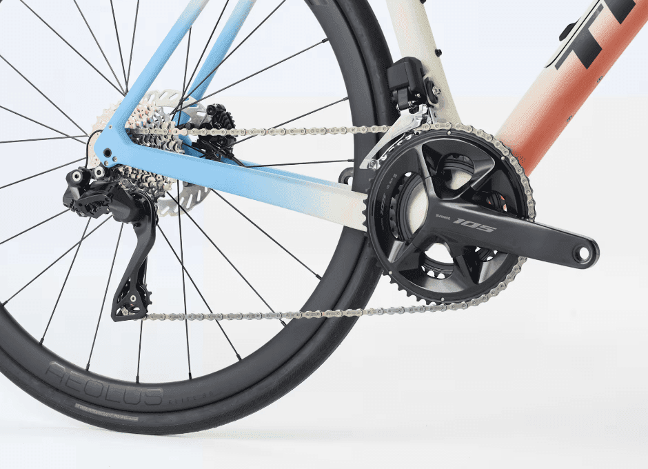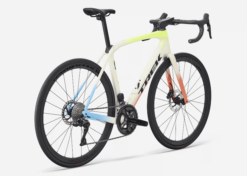 Fourche : Domane SLR carbone, pivot conique carbone, passage interne des câbles de frein, fixations pour garde-boue, disque Flat Mount, axe traversant 12 x 100 mm