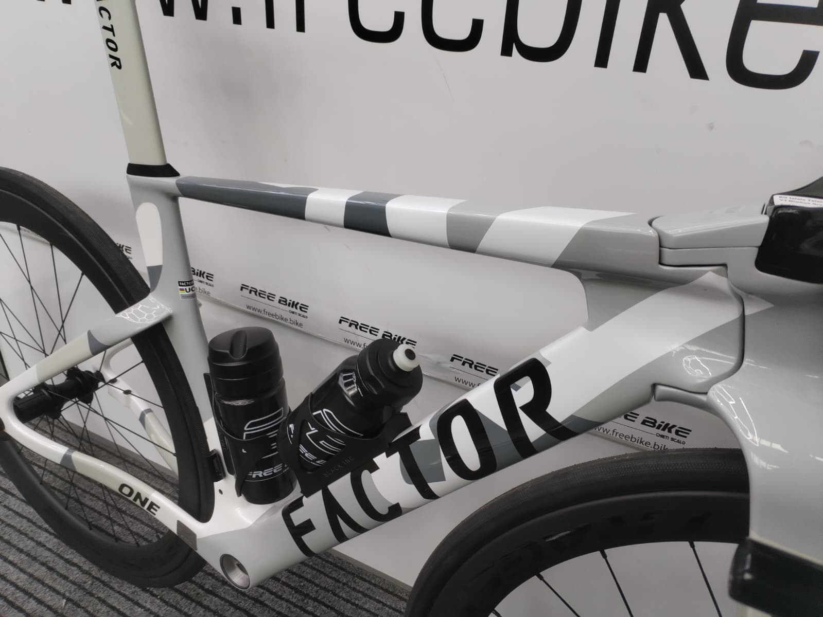 Attacco manubrio: Factor Integrated Barstem, reach 80 mm, drop 120 mm. Larghezza manubrio di soli 380 mm con 5 opzioni di reach.