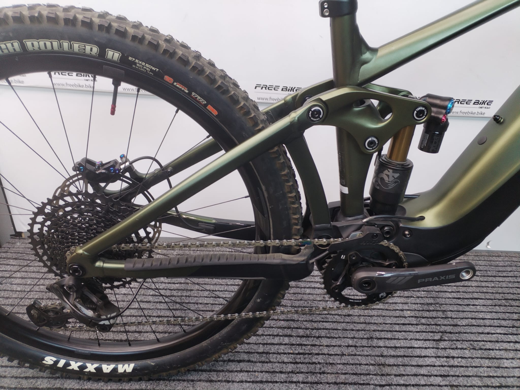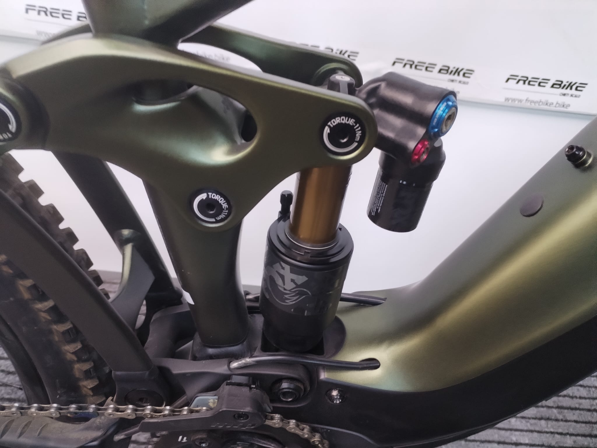 Sospensione: Fox Float X2 Factory, EVOL Large Volume sleeve, 2-position lever, 205×62.5mm Trunnion mount, custom tuned